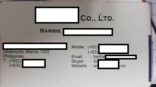 Ông Barbie ██████████ đại diện cho công ty ██████████Co., LTD có trụ sở tại thành phố Manila, Philippines và chi nhánh tại Singapore.