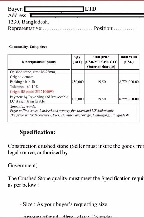 Hình ảnh đơn hàng nhập khẩu đá dăm gần đây của ông