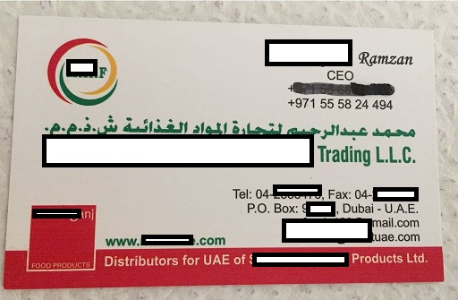 Ông Muhammad ██████████ đại diện cho công ty ██████████ Trading L.L.C có trụ sở tại Dubai