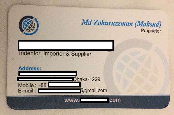 Hình ảnh danh thiếp của ông Zaman