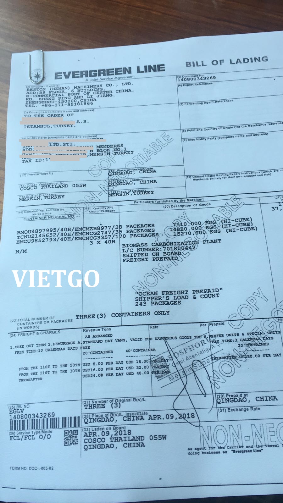 B/L nhập khẩu từ Trung Quốc của ông Ihsan trong tháng 4/ 2018 vừa qua