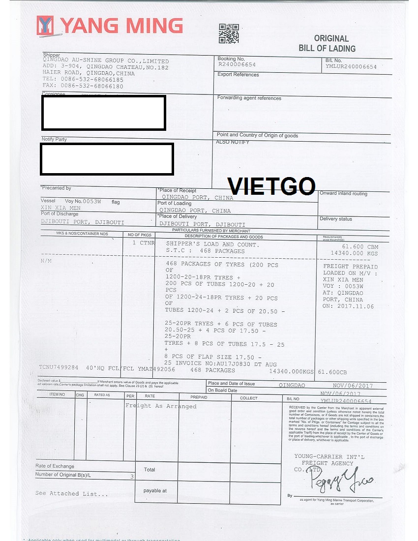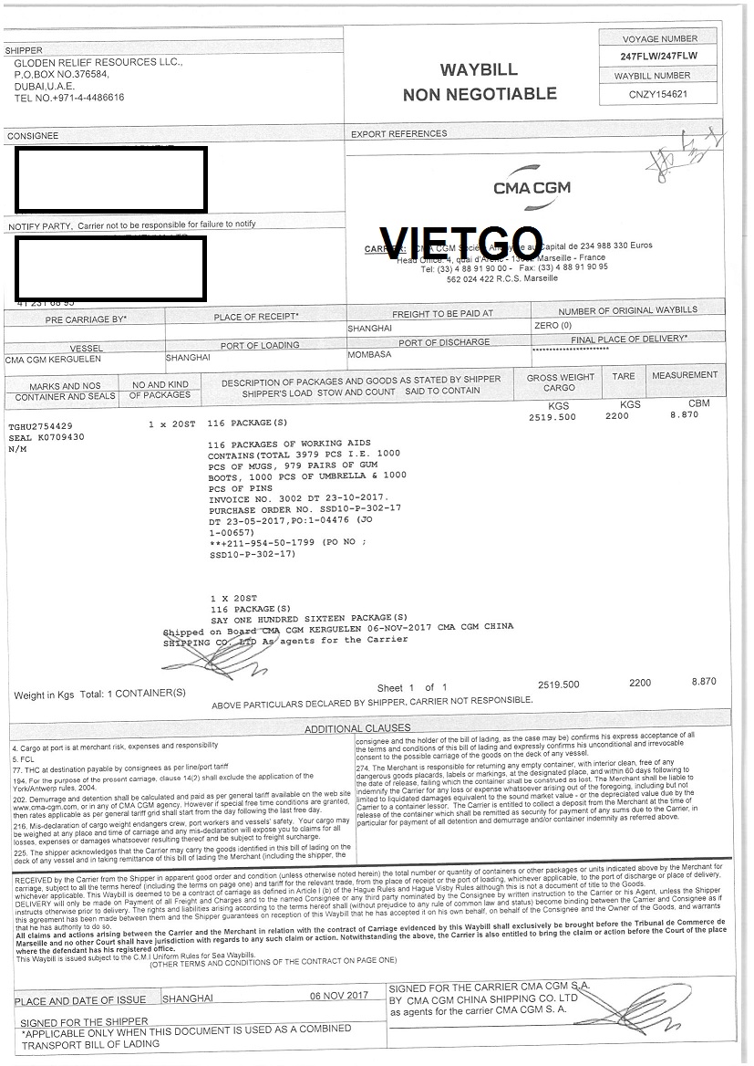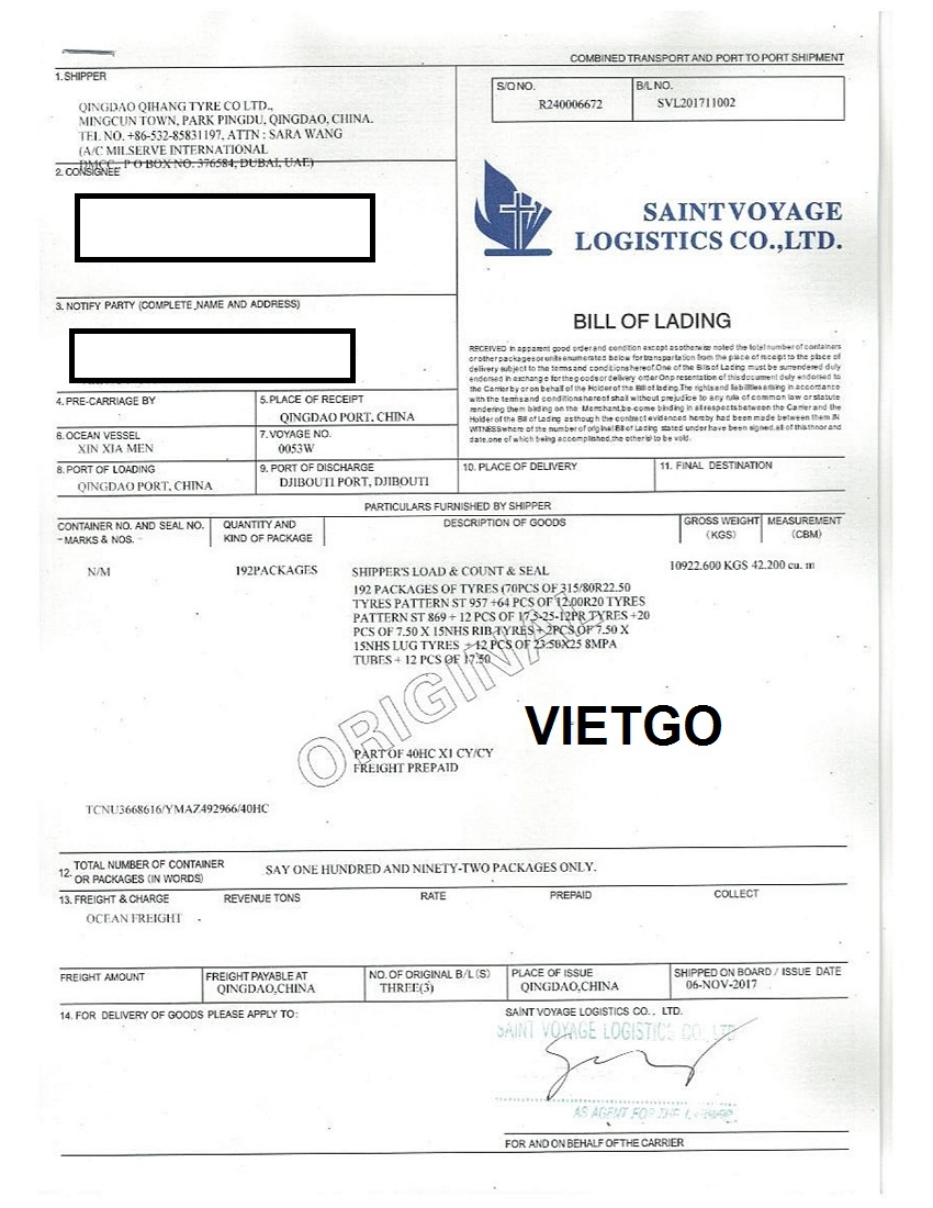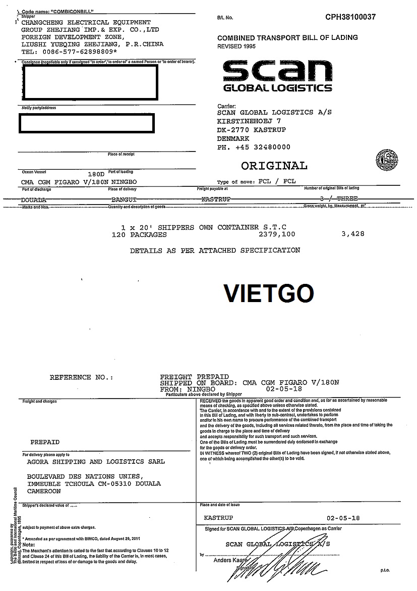 BL nhập khẩu do khách hàng cung cấp