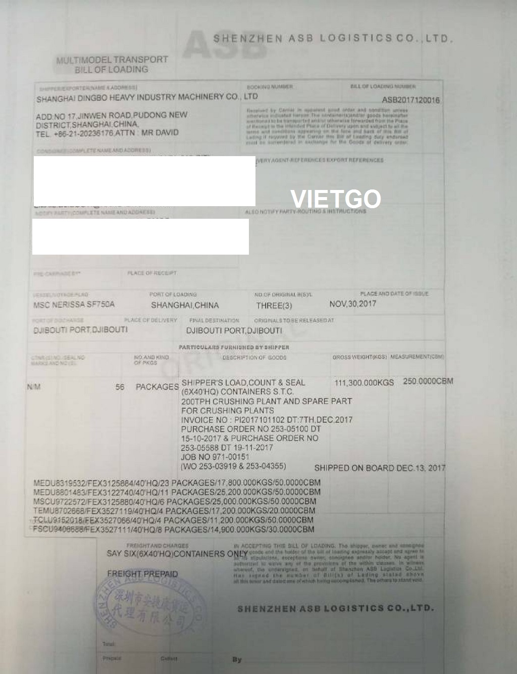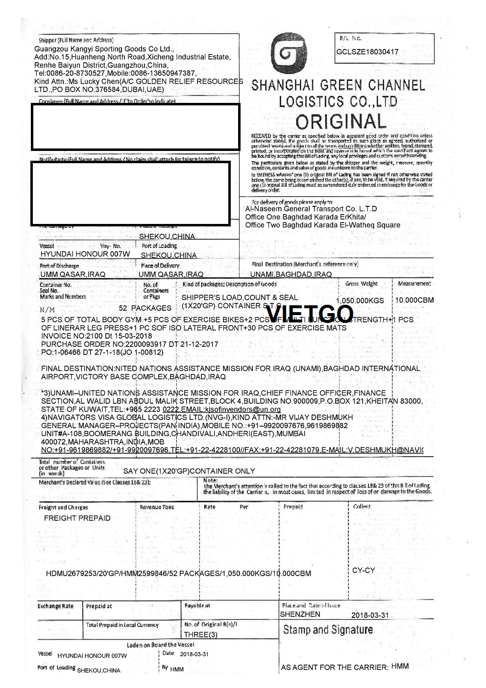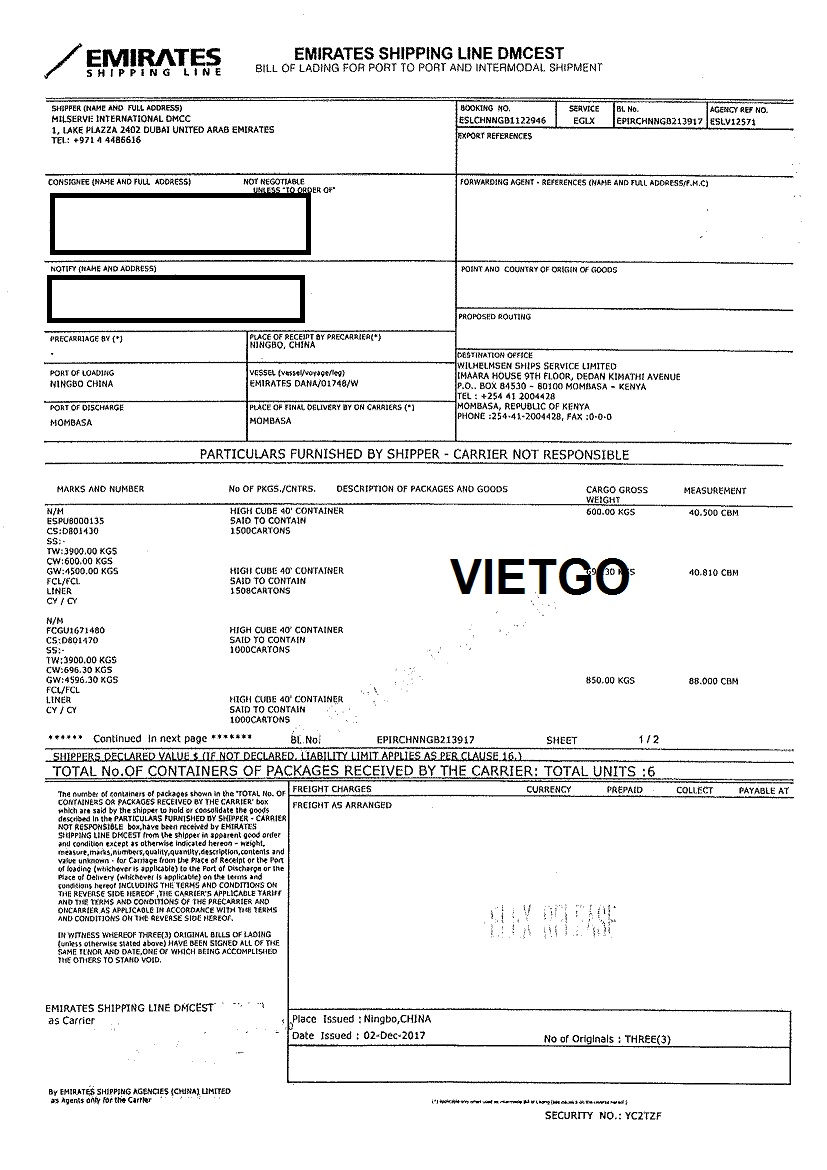 BL nhập khẩu do khách hàng cung cấp