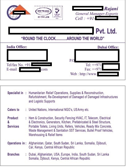 Danh thiếp của ông Rajani