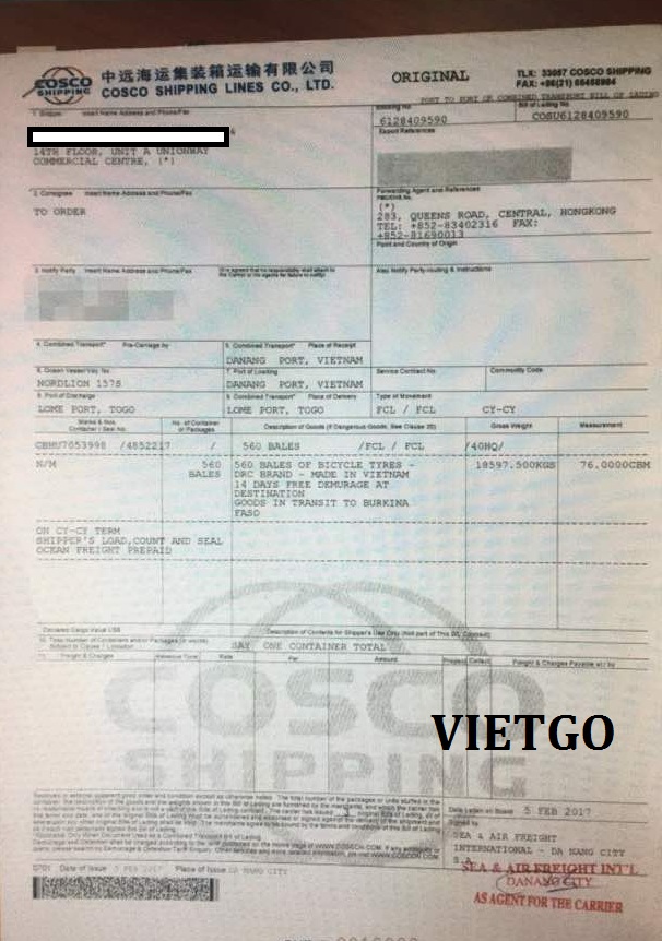 Báo giá: FOB tại cảng Việt Nam và giá CNF cảng Lome, Togo