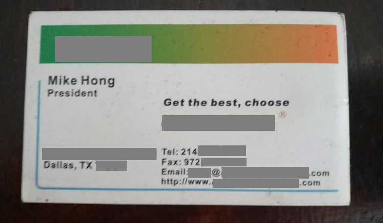 Hình ảnh danh thiếp cá nhân của ông Mike Hong