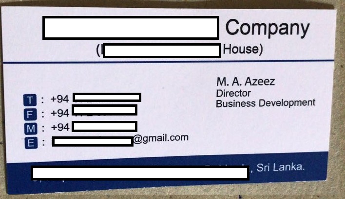 Danh thiếp của ông Azeez