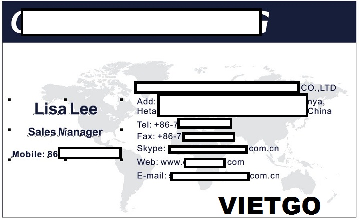 Bà Lisa Lee đại diện đến từ công ty██████████ Co., Ltd có trụ sở tại ██████████ tỉnh Quảng Đông, Trung Quốc. Công ty thương mại chuyên về xuất nhập khẩu thiết bị điện tử.