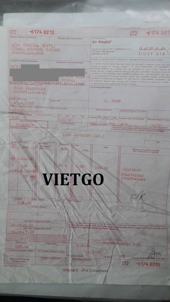 Air Waybill ( Vận đơn hàng không) nhập khẩu trước đây của ông Louay