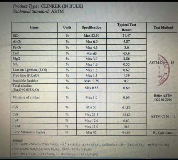 Tên sản phẩm: Clinker