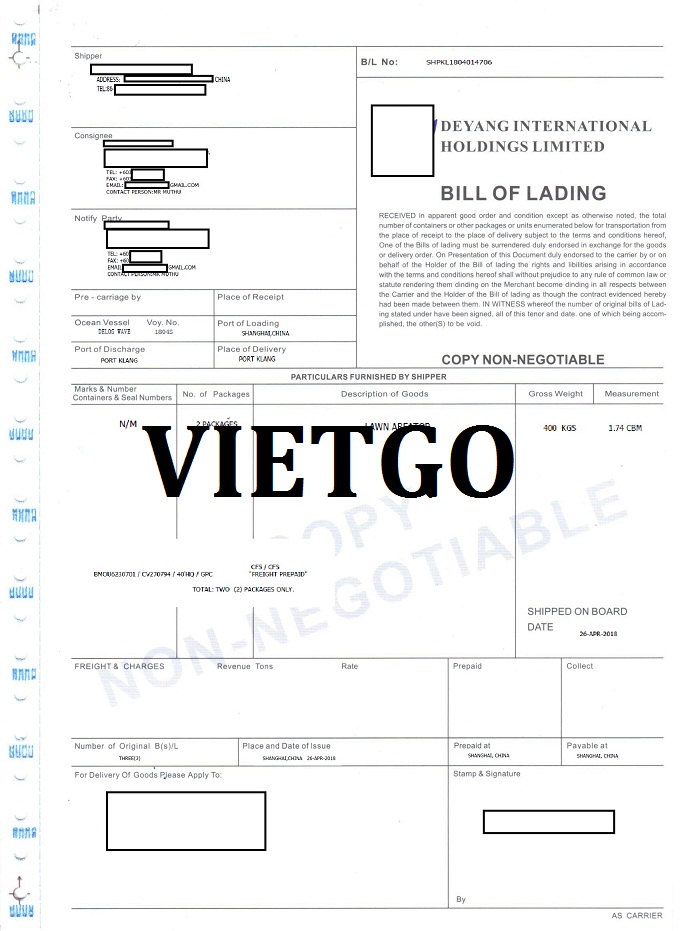 VIETGO xin gửi tới quý doanh nghiệp Vận Đơn (Bill of Lading) – Chứng từ nhập khẩu mà chỉ có doanh nghiệp đã từng giao dịch thành công mới có, để quý vị có thể tin tưởng ông là vị khách tiềm năng và có nhiều kinh nghiệm. Dưới đây xin gửi tới quý vị giấy tờ nhập khẩu máy sục khí mà ông đã giao dịch với Trung Quốc gần đây.