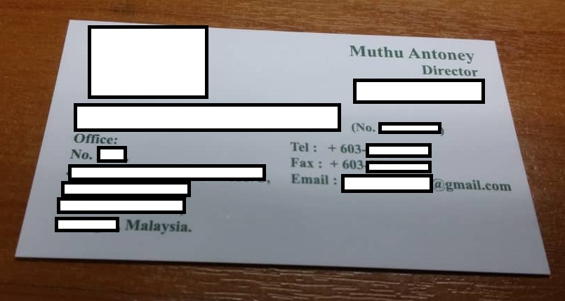Ông Muthu Antoney cho biết công ty của ông██████████ được thành lập vào năm 2013 tại Malaysia. Lĩnh vực kinh doanh chủ yếu của công ty là về các loại máy móc, công cụ và vật tư công nghiệp. Với quy trình hoạt động phù hợp và không ngừng đổi mới, công ty của ông đã từng bước trở thành nhà cung cấp lớn tại Malaysia nhằm đáp ứng nhu cầu ngày càng cao trong ngành xây dựng tại quê hương của ông. Phương châm của ông là luôn duy trì sự chuyên nghiệp và độc lập trong việc tư vấn và phục vụ khách hàng để xây dựng và phát triển công ty ngày càng lớn mạnh. Hiện tại công ty của ông đang tiến xa hơn nữa để đa dạng hóa ngành vật liệu xây dựng.