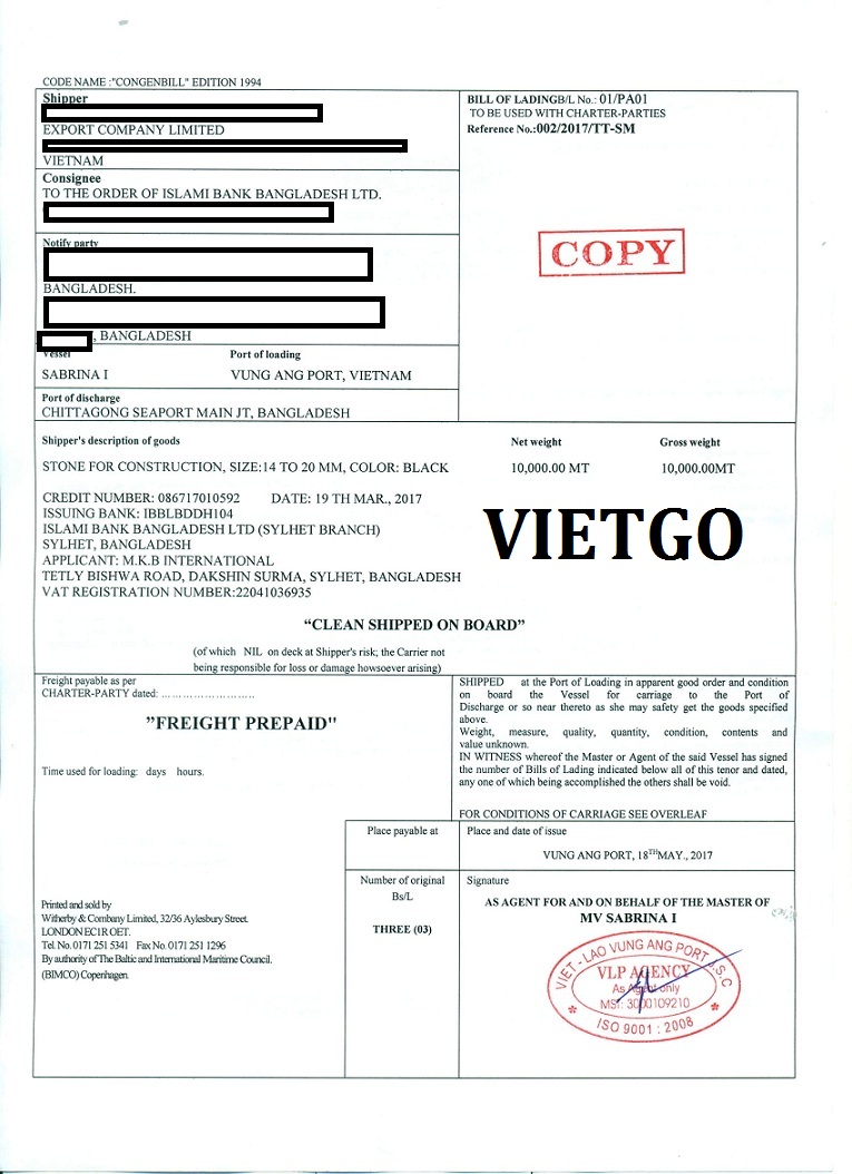 BL nhập khẩu đá xây dựng từ Việt Nam trước đây của ông Amin