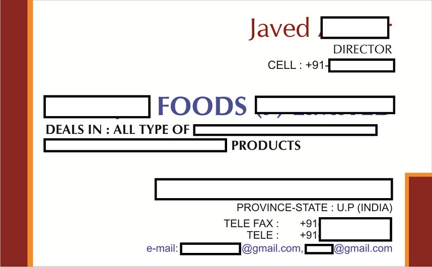 Thông tin chi tiết sản phẩm ông Javed muốn nhập khẩu
