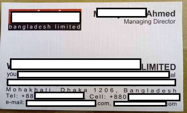 Ông Amed giám đốc điều hành công ty ██████████, có trụ sở tại thành phố Dhaka, Bangladesh. Công ty ông là công ty thương mại chuyên về xuất nhập khẩu các loại hàng hóa, đặc biệt là các loại gia vị từ khắp các quốc gia trên thế giới. Công ty ông hiện đang có khách hàng ở hầu khắp các quốc gia trên thế giới.