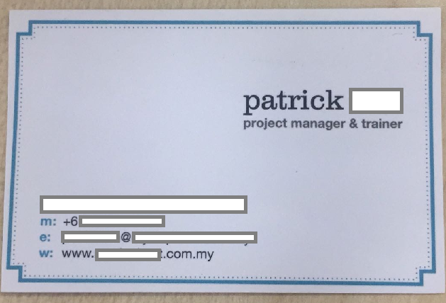 Ông Patrick ██████████, thương nhân tới từ Malaysia, cho biết ông có nhu cầu tìm nhà cung cấp 500 áo T shirt cho lần nhập thử đầu tiên.