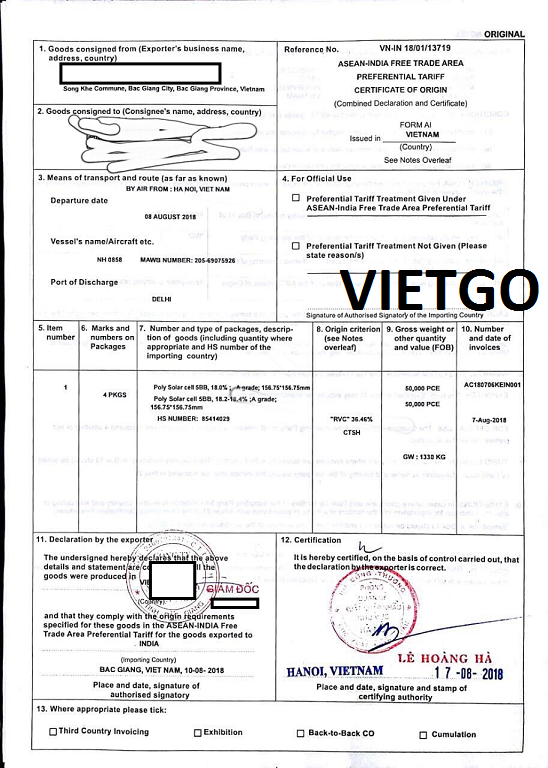 Yêu cầu thêm: cần có giấy chứng minh xuất xứ sản phẩm (hình giấy chứng nhận khách hàng cung cấp một sản phẩm ông nhập khẩu tại Việt Nam)