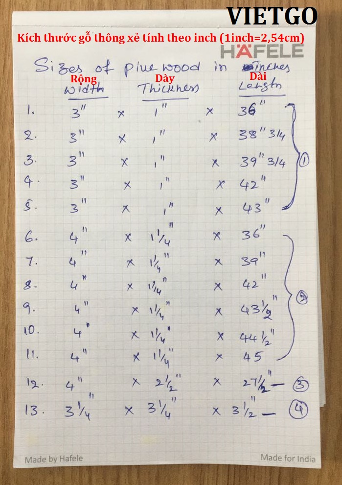 Vị khách hàng này đã gửi cho VIETGO đơn hỏi hàng rất chi tiết như sau: