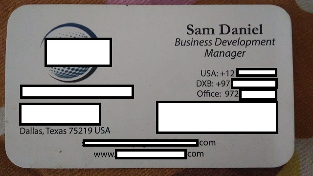 Ông Sam đại diện công ty ██████████, có trụ sở tại Mỹ và các chi nhánh văn phòng tại Dubai, Canada, Trung Quốc, Brazil và Việt Nam. Công ty ông là công ty thương mại quốc tế đã được thành lập 12 năm trước. Công ty ông kinh doanh đa dạng mặt hàng và có khách hàng ở nhiều nước khác nhau trên thế giới. Mặt hàng chính của công ty là các loại thực phẩm. Ông Sam hiện tại đang làm việc tại chi nhánh của công ty ông tại Ấn Độ.