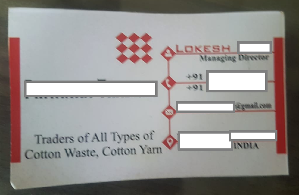 Ông Lokesh chia sẻ mình đến từ công ty thương mại ██████████. Công ty của ông có trụ sở đặt tại Ấn Độ với chuyên ngành chính là kinh doanh các loại mặt hàng bông, sợi làm từ cotton.