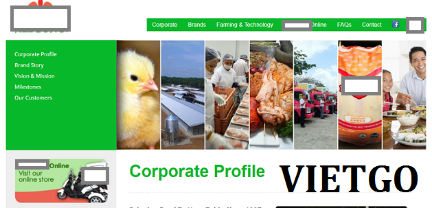 “Xin chào Quý vị, tôi là Law đến từ công ty ██████████, là một công ty thành viên của tập đoàn ██████████ với trụ sở chính được đặt tại Singapore. Vào năm 1987, ██████████ được thành lập và bắt đầu đi lên bằng cách cung cấp thực phẩm, chủ yếu là thịt gia cầm, cho các siêu thị và các chợ đầu mối. Dần dần, chúng tôi mở rộng mạng lưới của mình đến các khách sạn và nhà hàng hàng đầu tại Singapore và Malaysia. Tập đoàn ██████████ sở hữu một vài trang trại lớn để đáp ứng nhu cầu ngày càng cao của khách hàng trong khu vực. Ngoài việc nuôi gà, chúng tôi còn xử lý việc chế biến, đóng gói và phân phối gia cầm đông lạnh. ██████████ cũng đã được niêm yết công khai tại Đài Loan.