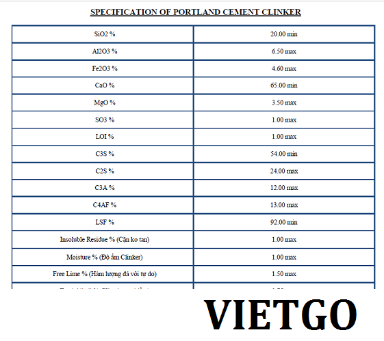 Opportunity to export 50,000 tons of clinker to the Bangladesh market.