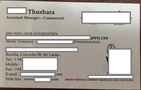 Danh thiếp của ông Thushara