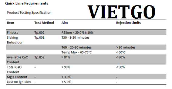 Hiện nay, công ty của ông đang có nhu cầu tìm nhà cung cấp vôi sống để cung cấp cho thị trường khách hàng tại Australia. Ông rất mong nhận được báo giá sớm của Quý nhà cung cấp và rất mong có cơ hội hợp tác lâu dài với Quý vị cho sản phẩm này.