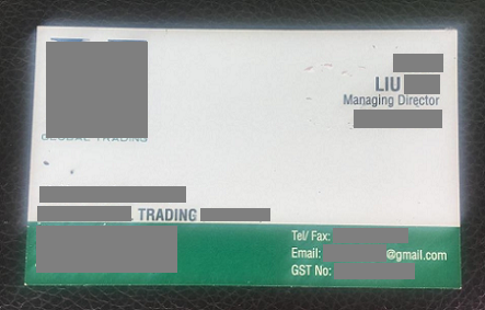 Danh thiếp của vị khách có nhu cầu nhập khẩu than