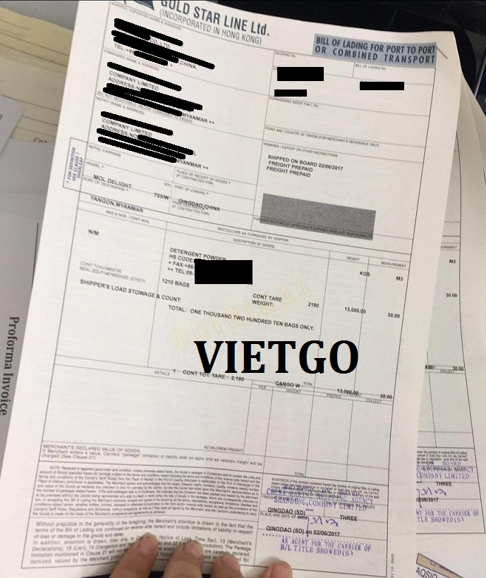 Để minh chứng rằng đây là vị khách hàng có nhu cầu thực sự và đang mong muốn tìm kiếm cơ hội hợp tác lâu dài với Quý nhà cung cấp tại Việt Nam, VIETGO xin được gửi tới Quý vị bản Vận Đơn (Bill of Lading) cho đơn hàng nhập khẩu BỘT GIẶT mà công ty của bà đã kí kết hợp tác thành công với đối tác tại Trung Quốc thời gian gần đây.