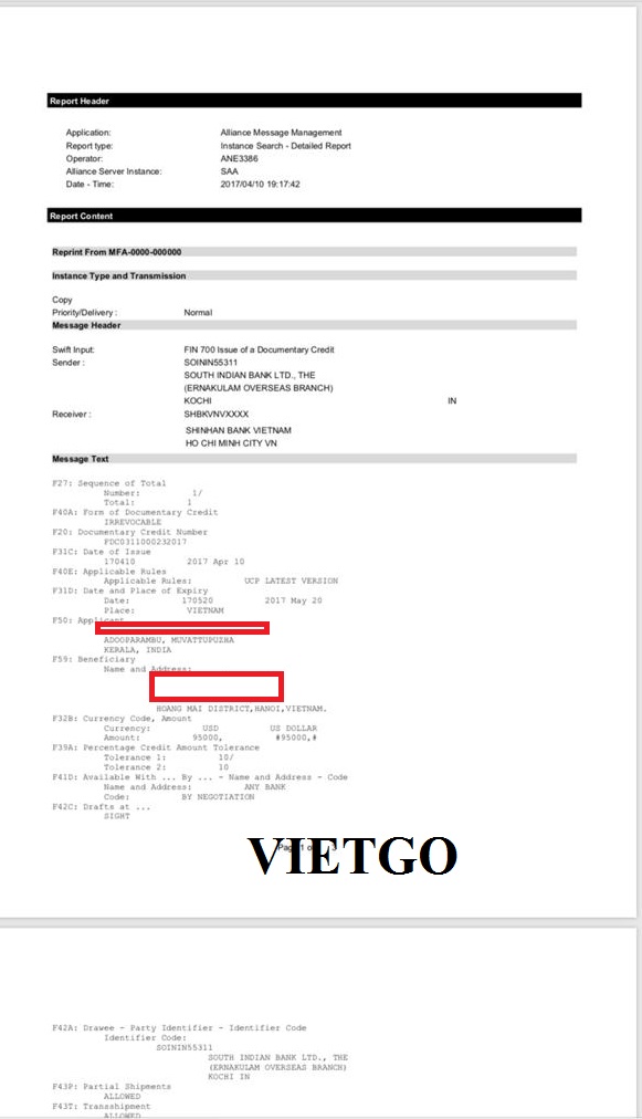 VIETGO cũng xin được gửi tới Quý doanh nghiệp giấy tờ nhập khẩu Gỗ từ Việt Nam mà phía công ty ông Brida đã từng giao dịch để Quý vị có thể tin tưởng ông là vị khách hàng tiềm năng và có nhiều kinh nghiệm trong việc nhập khẩu cùng loại hàng hóa (Hóa đơn thương mại và Giấy tờ thủ tục mở LC của khách hàng)