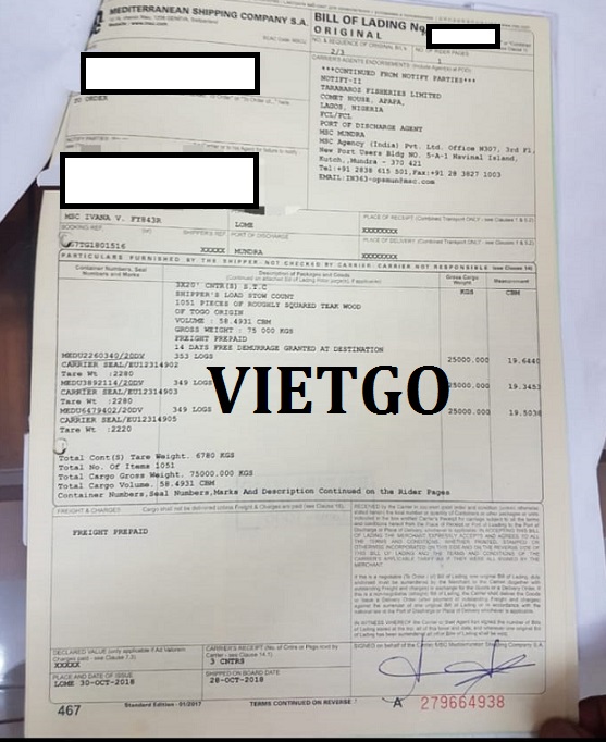 Để củng cố thêm lòng tin cho Quý vị, Ông Jagdish đã gửi đến Quý vị một VẬN ĐƠN (BILL OF LADING) của một chuyến hàng Gỗ teak mà Công ty ông đã nhập khẩu thành công từ tháng 10/2018 vừa qua.