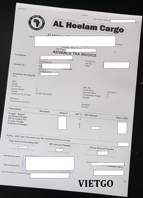 Phương thức báo giá: CIF ( cảng Douala, Cameroon)