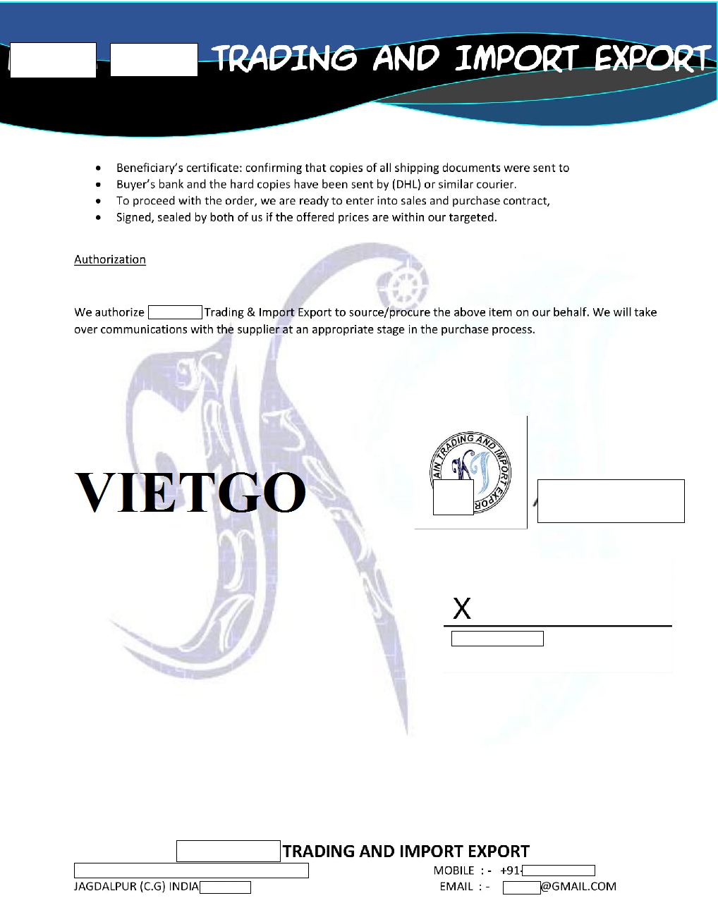 Đối với Quý doanh nghiệp quan tâm đến đơn hàng này của Mr Kumar, xin vui lòng liên hệ và báo giá với vị khách hàng qua thông tin liên hệ dưới đây.