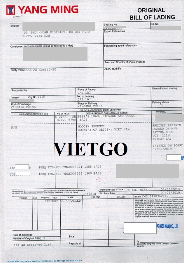Ông Xiao cũng đã từng nhập khẩu mặt hàng gỗ từ Việt Nam. VIETGO xin gửi tới Quý vị bản Vận đơn nhập khẩu sản phẩm gỗ của công ty ông ngày 07/06/2019 - cảng Cát Lái để làm minh chứng cho kinh nghiệm giao thương của mình và giúp Quý vị thêm tin tưởng vào Cơ hội Giao thương này: