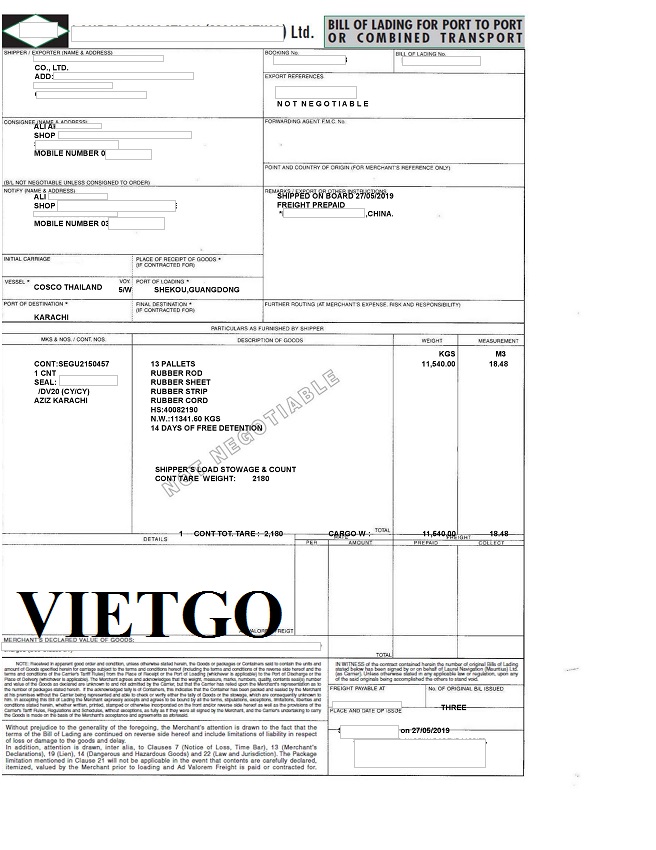 VIETGO cũng xin được gửi tới Quý vị bản Vận đơn nhập khẩu do công ty của Ông Ali tiến hành nhập khẩu sản phẩm gỗ Pallet từ Trung Quốc để làm minh chứng cho kinh nghiệm trong việc nhập khẩu của vị khách hàng cũng như sự nghiêm túc của Ông trong việc tìm kiếm nhà cung cấp tại Việt Nam cho đơn hàng này.