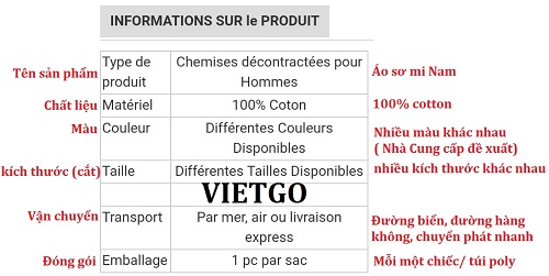 Ông Yacouba – Vị khách hàng đến từ Tây phi hôm nay liên hệ với VIETGO để hỏi cho đơn hàng áo sơ mi. Mời Quý vị nghiên cứu thông tin đơn hàng bên dưới đây: