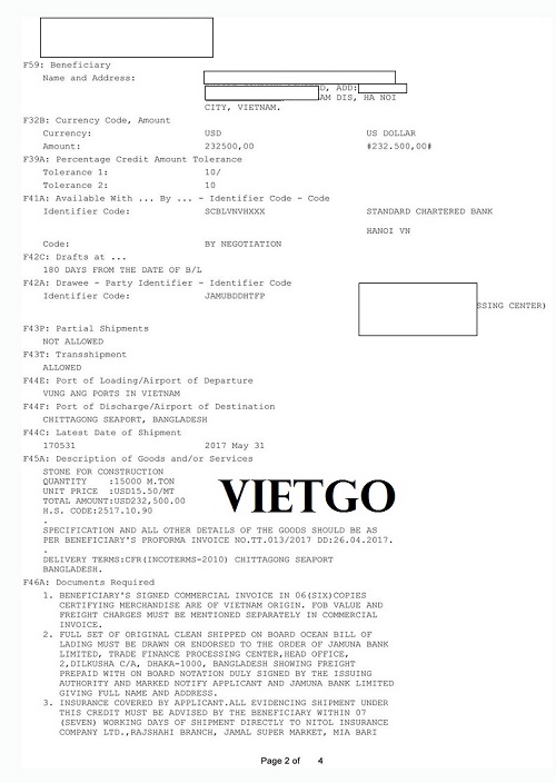 Để Qúy vị có thể tin tưởng ông là vị khách hàng tiềm năng và có kinh nghiệm trong việc nhập khẩu hàng hoá, ông xin được gửi bản vận đơn nhập khẩu mặt hàng đá xây dựng mà công ty ông đã giao dịch vừa qua: