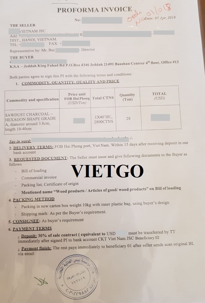 VIETGO cũng xin gửi tới Quý vị hóa đơn và bản vận đơn nhập khẩu mặt hàng than củi mùn cưa vào tháng 8/2018 từ Việt Nam để minh chứng cho kinh nghiệm nhập khẩu của doanh nghiệp này: