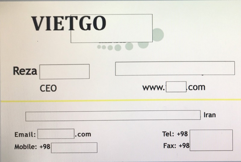 Vị khách hàng của chúng ta là Mr Reza ██████████ – thương nhân người Iran. Ông hiện đang nắm giữ chức vụ CEO tại Công ty với tên gọi là ██████████, có trụ sở tại Iran.
