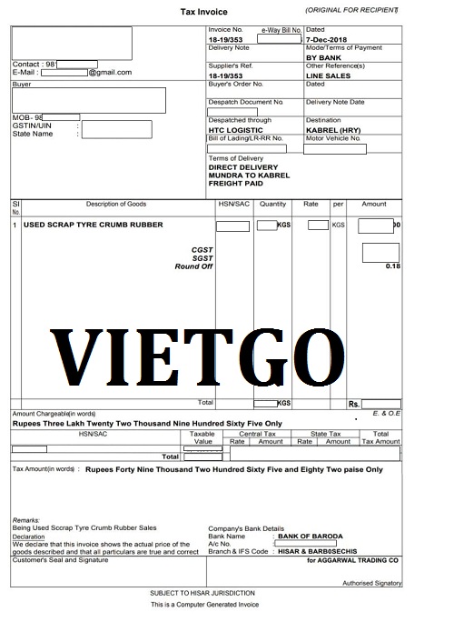 VIETGO cũng xin được gửi tới Quý vị bản Vận đơn nhập khẩu do công ty của Ông Sonu tiến hành nhập khẩu sản phẩm Sắt vụn từ Bang Haryana để làm minh chứng cho kinh nghiệm trong việc nhập khẩu của vị khách hàng cũng như sự nghiêm túc của Ông trong việc tìm kiếm nhà cung cấp tại Việt Nam cho đơn hàng này.