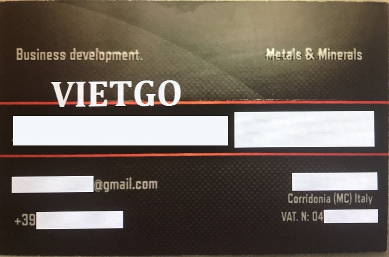 Ông Alex là đại diện đến từ công ty ██████████, một nhà phân phối có tiếng tại quốc gia Ý tập trung vào cung cấp nguyên liệu thô như phôi thép, hợp kim, quặng sắt cho các nhà sản xuất thép. Ông cho biết mình làm việc như một nhà phát triển kinh doanh trong các thị trường đúc thép như phôi thép từ Thổ Nhĩ Kỳ, CIS, Ả Rập Saudi và phế liệu thép từ Đức và Thụy Sĩ. Do đó lượng khách hàng của công ty ông vô cùng ổn định và đều là những khách hàng tiềm năng. VIETGO đã có cuộc trò chuyện ngắn với ông Alex, được biết vào năm 2013, ông đã từng có chuyến công tác tại thành phố Hồ Chí Minh, Hà Nội cho đơn hàng cao su của công ty. Ông dành rất nhiều lời khen và tình cảm cho con người và đất nước Việt Nam. Ông hy vọng sẽ sớm có cơ hội tiếp tục hợp tác với các nhà cung cấp Việt Nam. Qúy doanh nghiệp Việt Nam quan tâm và có thiện chí hợp tác vui lòng liên hệ gấp cho ông Alex qua Whatsapp và email.