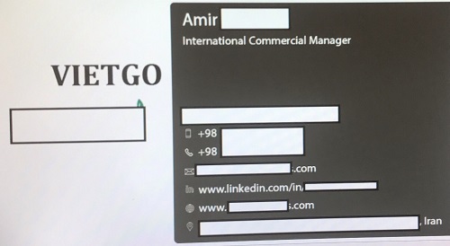 Ông Amir ██████████ là doanh nhân đến từ Iran hiện đang có nhu cầu tìm nhà cung cấp cho sản phẩm nông sản Củ nghệ và Ớt tươi Việt Nam để mở rộng mô hình kinh doanh cá nhân không chỉ tại thị trường nước nhà mà còn với cả các quốc gia lân cận.
