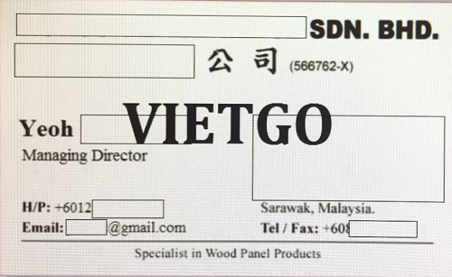 “Xin chào! Tôi là Yeoh, hiện nay đang có nhu cầu nhập khẩu ván dăm từ Việt Nam. Vì thế, tôi quyết định liên hệ với VIETGO để có thể thông qua VIETGO kết nối đến những nhà cung cấp Ván dăm chất lượng cao. Giới thiệu qua về bản thân, tôi là đại diện đến từ Công ty ██████████ Sdn. Bhd. Được thành lập từ năm 2000, công ty chúng tôi là nhà nhập khẩu và phân phối các sản phẩm gia đình và xây dựng trên thị trường Châu Á. Hiện nay chúng tôi đang có nhu cầu nhập khẩu Ván dăm mặt melamine mà Quý doanh nghiệp có thể cung cấp. Chúng tôi muốn hợp tác lâu dài với một nhà cung cấp Ván dăm có thể đáp ứng được những yêu cầu ở trên từ Việt Nam. Nếu hài lòng với chất lượng và giá cả mà Quý doanh nghiệp đưa ra, chúng tôi sẽ ký kết hợp đồng 250-350m3 mỗi tháng với Quý doanh nghiệp. Nếu Quý nhà cung cấp nào có thể đáp ứng được đơn hàng của tôi, xin vui lòng liên hệ với tôi trong thời gian sớm nhất. Xin chân thành cám ơn!”