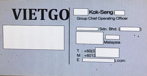 Ông Kok-Seng đang dùng chủ yếu là email và Whatsapp để giao dịch và đàm phán. Vị khách hàng đến từ Malaysia hy vọng có thể sớm nhận được liên hệ từ phía Quý nhà cung cấp của VIETGO để tiến hành đàm phán, trao đổi thêm.