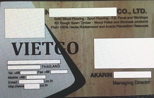 VIETGO đã có cuộc trò chuyện ngắn với một vị khách hàng tiềm năng đến cần mua gỗ cao su ghép thanh đến từ Thái Lan. Vị khách hàng chia sẻ: “Tôi là Akarin ██████████, đại diện công ty ██████████ tại Thái Lan. Công ty chúng tôi chuyên sản xuất cầu thang các loại. Chúng tôi thường mua gỗ cao su xẻ và cao su ghép thanh để sản xuất. Hiện tại tôi cần tìm nhà cung cấp cho dự án cần khoảng 3 container gỗ cao su ghép thanh lần này. Tôi rất mong sớm nhận được phản hồi từ doanh nghiệp để có thể trao đổi thêm về đơn hàng này! VIETGO kính chúc quý doanh nghiệp sớm xuất khẩu thành công! Xin chân thành cảm ơn!