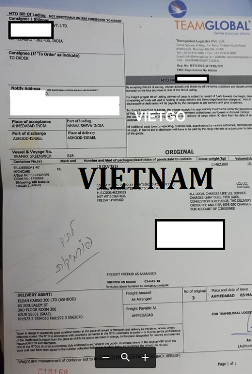 Để củng cố thêm lòng tin cho Quý vị, Ông Daniel đã gửi đến Quý vị một tờ giấy vận đơn của một chuyến hàng nhập khẩu Thùng gỗ mà Công ty ông đã nhập khẩu thành công từ Ấn Độ.