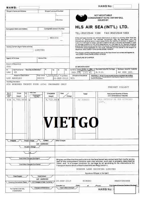 Thông qua VIETGO, vị khách hàng cũng muốn gửi tới Quý vị bản Vận đơn nhập khẩu của công ty ông từ Trung Quốc ngày 24/09/2019 để làm minh chứng cho kinh nghiệm giao thương quốc tế của mình: