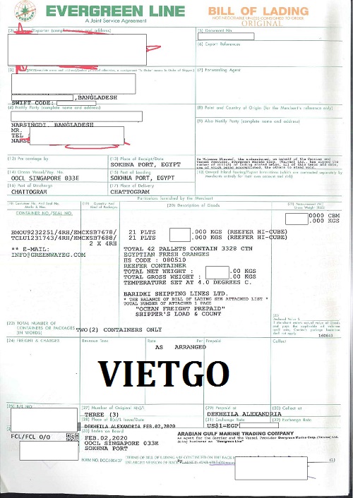 VIETGO cũng xin được gửi tới Quý vị bản Vận đơn nhập khẩu do công ty của Ông Biplob tiến hành nhập khẩu Quả Cam từ Ai Cập để làm minh chứng cho kinh nghiệm trong việc nhập khẩu của vị khách hàng cũng như sự nghiêm túc của Ông trong việc tìm kiếm nhà cung cấp tại Việt Nam cho đơn hàng này.