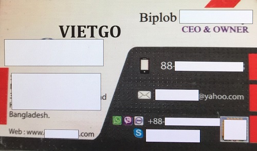 Mọi chi tiết cụ thể cũng như để trao đổi sâu thêm về đơn hàng cung cho mặt hàng Tỏi Trắng ở trên, Quý vị vui lòng liên hệ theo duy nhất địa chỉ ghi dưới đây để sớm nhận được hồi âm từ phía vị khách hàng đến từ Bangladesh này.